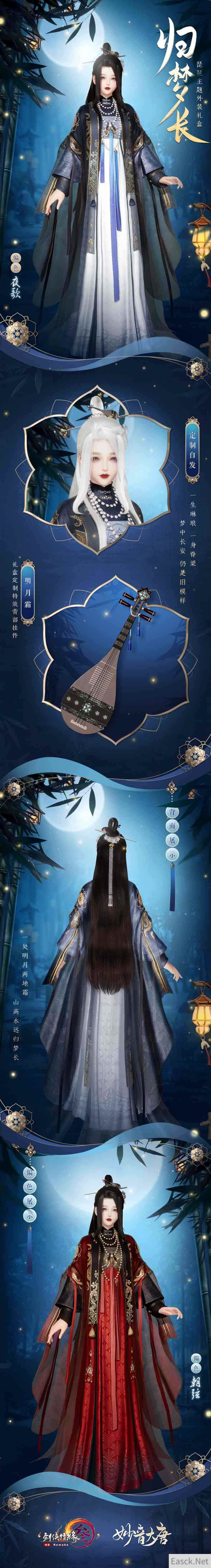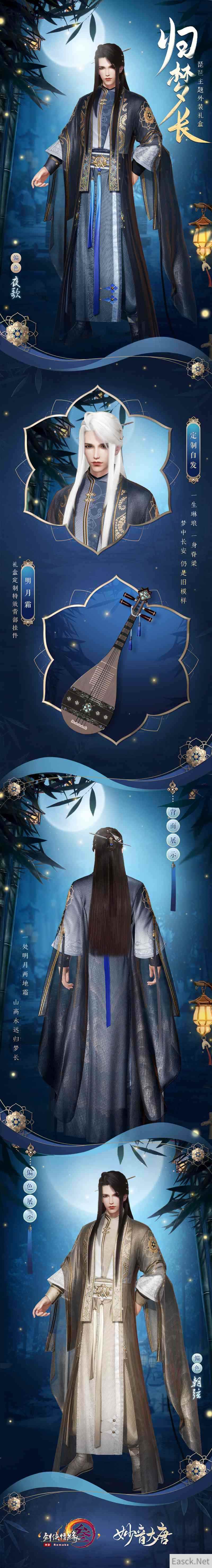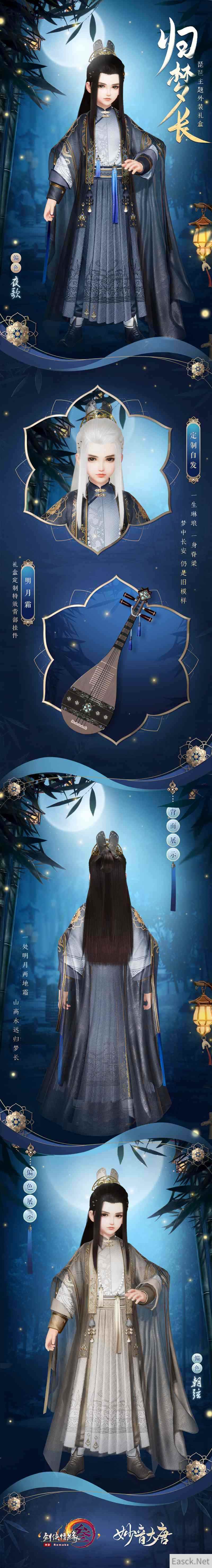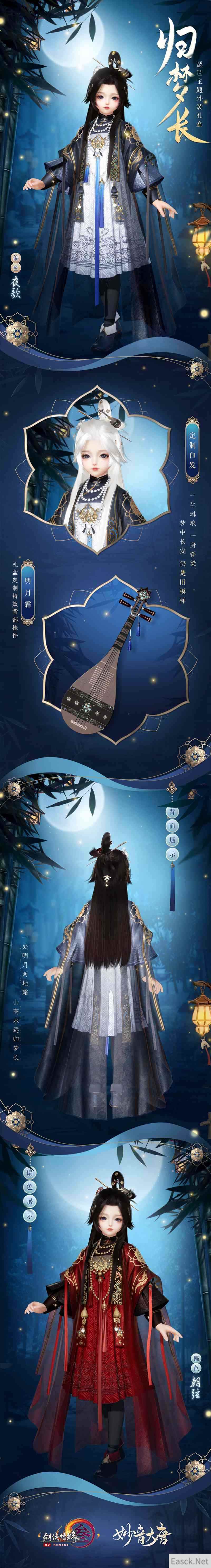 新年到来当然也有新品登场,今日与大家见面的《妙音大唐》系列琵琶主题外装礼盒“归梦长”相信也是触动了不少侠士,那么就一起来了解其更多特色吧! 【山高水远归梦长 《妙音大唐》系列琵琶主题外装礼盒登场】 《妙音大唐》系列选取彰显中华文化魅力的乐器,以全新艺术形式与大家分享这些中华文化精粹所承载的岁月痕迹。本次以琵琶为主题,创作全新主题曲《归梦长》,由著名琵琶演奏家蒋镆潼老师献艺演奏,著名青年艺术家李玉刚老师倾情献唱,两位老师通过绝伦技艺与真挚的感情,用音符做画笔,为我们绘就了一幅讲述乌孙公主远嫁西域的画卷,并将琵琶乐器在历史长河中不断发展的故事娓娓道来! 琵琶,乃是我国历史悠久的主要弹拨乐器,被誉为“弹拨乐器首座”。历史上的所谓琵琶,并不仅指具有梨形共鸣箱的曲项琵琶,而是多种弹拨乐器,所以说当时的“琵琶”形状类似,大小有别,像月琴,阮等,都可说是琵琶类乐器。经过历朝历代先贤的不断改进,至今琵琶的形制已经趋于统一,成为六相二十四品的四弦琵琶。琵琶的音域非常广,演奏技巧亦为民族器乐之首,表现力更是民乐中最为丰富的乐器。 如今,我们将琵琶乐器的历史背景与发展,同中国古典传统文化相融合,并加入独特创新,推出琵琶主题外装礼盒“归梦长”!礼盒外装古朴素雅,在国风服饰款型基础上大胆创新,共有延维色的“夜歌”与朱殷色的“朝弦”两款偏色。 成男款清幽淡雅,款型儒雅温润内敛,以低调的水波绣纹表现侠士气度沉稳、波澜不惊;成女款端庄雅致,金丝绣纹点缀纯色衣裙,雍容不失贵气,如琵琶一般积蕴着千百年来文化交融之精粹;萝莉款以绛色透纱辅以衣袖飘曳,给人以朦胧之美,搭配明丽却不张扬的珠饰,正应了“犹抱琵琶半遮面”的古典韵味;正太款落落大方,中正自持,却从衣饰、绣纹等细节处隐隐透出澎湃豪情,正如琵琶既能弦弦动人,亦可奏出杀伐之乐! 不仅如此,身着外装还有其专属特效舞蹈动作,侠士手持琵琶曼舞,舞姿婉丽含蓄,一颦一笑,收张自如,将琵琶乐曲的朦胧与澄澈两种颇为对立的特点巧妙体现,也更加彰显琵琶这一古典乐器所蕴藏着的艺术魅力是多层次、多领域的。 此外,礼盒内含定制琵琶款式特效背部挂件“明月霜”,拨弦之刻,奏一曲《归梦长》,乐曲由蒋镆潼老师倾心演绎,将最动人的音符串联成你我心中难忘的旋律! 《妙音大唐》系列·琵琶主题外装礼盒“归梦长”将于12月30日上架商城,详情如下: 共有两款偏色可供选购,礼盒内含(布料2.0特效成衣+绑定款定制黑发+定制白发+定制特效背部挂件“明月霜”) 不绑定款:12月30日20:05限量15,000(电信12,000双线3,000)个,售价52,000通宝,不可用折扣券。 绑定款:12月30日20:30至1月20日7:00上架,售价52,000通宝,不可用折扣券。 推栏不绑定款:12月30日20:35限量150(电信120双线30)个,售价52,000通宝,不可用折扣券。