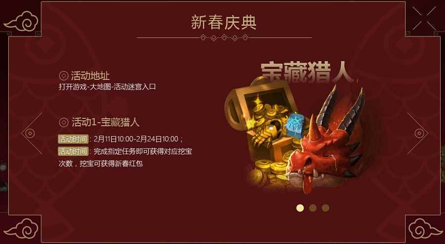 新春活动花样多,闯关挑战拿福利 为了犒劳辛勤冒险者们一年不停歇的敲砖大冒险,冈布奥委员会为发福利可谓是使出了浑身解数,活动一“宝藏猎人”完成指定任务,如签到、拥有西游记主题冈布奥、定向越任务完成,即可获得对应的挖宝次数,一次九宫格的挖宝运气较量马上到来!