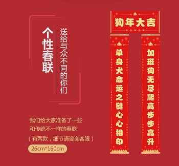 定制春联,游戏术语和春节祝福的创新结合 游戏术语竟然也能成春联?着实让小编佩服设计者们的创意脑洞,狗年大吉春联“单身犬命运之链心心相印,加班狗无尽爬高步步高升”,从春联中展现出来了游戏代表性的迷宫冒险和天空探索玩法,趣味感十足。
