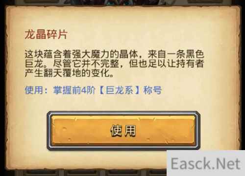 龙血战士能够将龙力量使用到极致。学习或升级巨龙称号时,除了能够降低探索点的消耗以外,还能根据称号的数量,进一步叠加攻击力! 一堆巨龙系称号在手,想必横扫迷宫也是分分钟的事。 专属道具—龙晶碎片