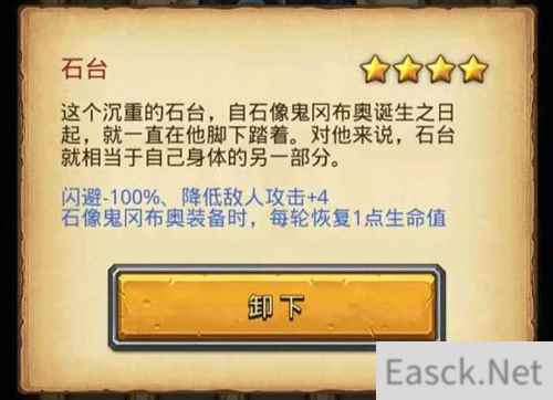 技能石像形态续航能力MAX,每下一层回复20的能量值,消耗能量就可以变成打不死的小强。只要对手无法一次性秒掉石像鬼,再搭配专属饰品,它就是无敌的存在。 专属饰品—石台