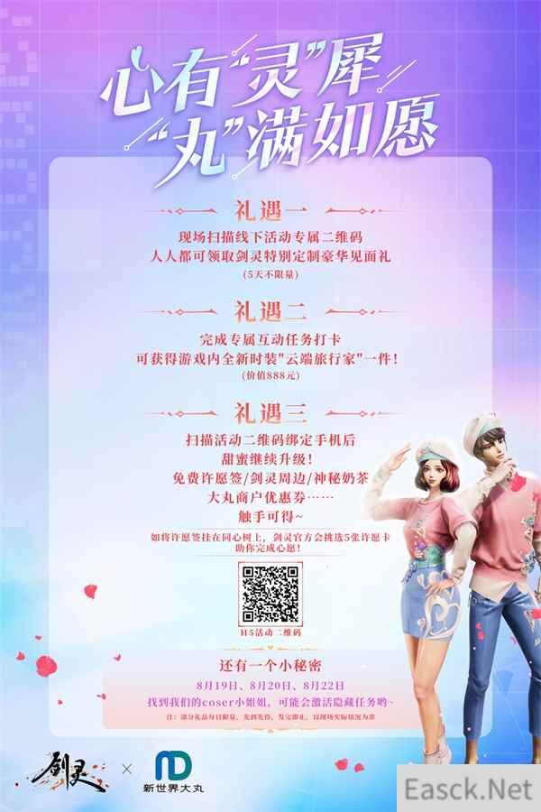 这场别开生面的“异世界Lv999的同心许愿”活动现已开启,8月18日至8月22日,同心树还将来到三次元,在上海新世界大丸百货接受大家的跨次元许愿。只要在现场扫线下活动专属二维码,人人都可领取剑灵送出的豪华见面礼,5天不限量!领取完见面礼之后,玩家还可以选择挑战线下专属互动任务打卡,挑战成功的玩家可领取到游戏内全新时装“云端旅行家”。