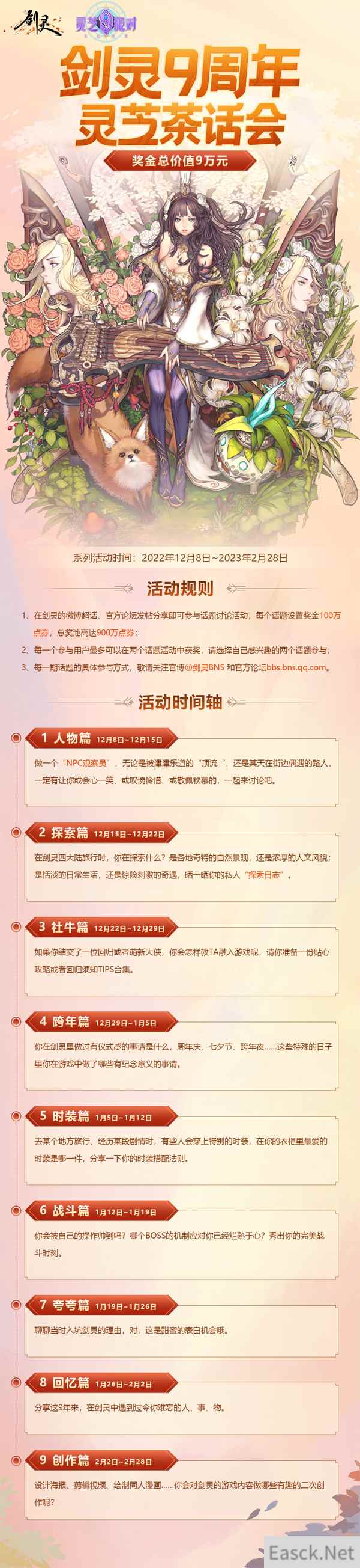 在四大陆旅行时,你在探索什么?是各地奇特的自然景观,还是浓厚的人文风貌;是恬淡的日常生活,还是惊险刺激的奇遇?快来参加灵芝茶话会第二期活动,晒一晒你的私人“探索日志”,就有机会赢取丰厚点券奖励!每个话题都设置100万点券奖金,总奖池高达900万点券。 更多点券、好礼放送 周年庆典狂欢加倍 恰逢跨年之际,《剑灵》除了带来年末最后一个版本之外,还准备了超多点券为周年庆典福利加码!即日起至2023年1月14日活动期间,玩家参与【剑灵周年庆点券大放送】活动,邀请好友就有机会获得5万点券。除去点券之外,还有更多稀有成长材料助力成长,其中灿烂天木保护符和辉煌天木保护符首次在活跃活动中免费投放,绝对不容错过!