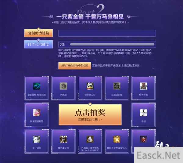 此外,玩家还可以参加活动中的门票抽奖环节,邀请好礼完成助力将获得更多门票,有机会抽中更多剑灵经典周边实物奖励。