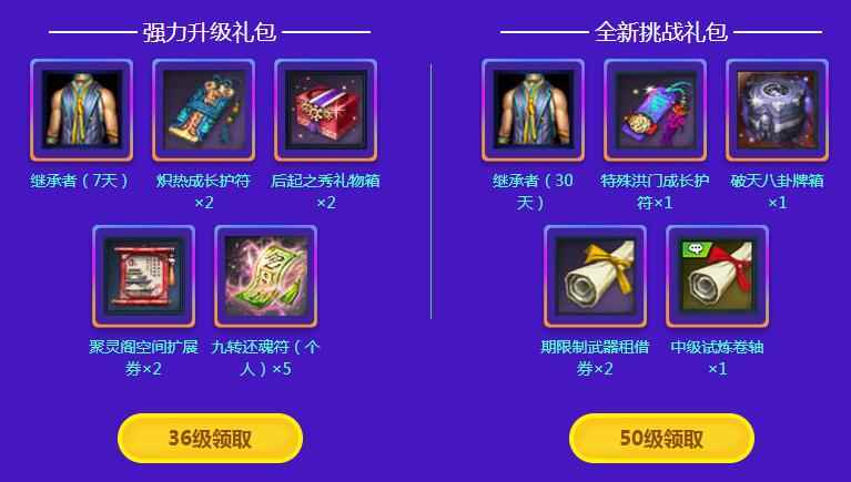 活动期间,2017年10月15日后未登录过剑灵的36级玩家可以领取强力升级礼包, Tips: 在修炼场55级角色无法参与本次活动,请离开修炼场后尝试领取礼包。