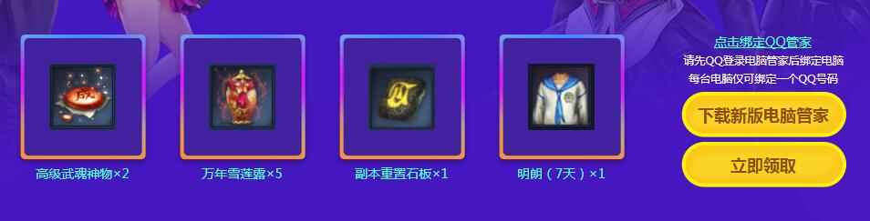 与你“彤”行 管家护航 活动时间:2017年11月1日-12月31日 活动地址:点此进入 一、登录管家 领专属礼包 登录新版电脑管家,即可获得管家专属游戏礼包一份,单Q限领一次。