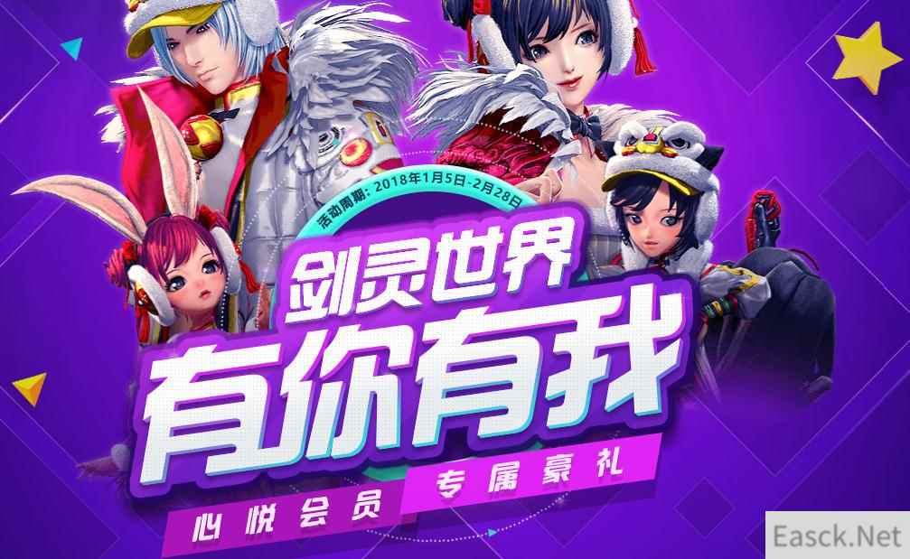 剑灵2018春节心悦俱乐部活动介绍 活动时间:2018.01.05-2018.02.28 活动地址:http://xinyue.qq.com/act/pc/a20171214xyhd/index.htm 奖励一览: 新手活动礼包 活动期间,2018年1月5日起首次创建剑灵角色的玩家可以1级、36级、45级领取礼包,游戏家用户可额外领取专属礼包, 心悦会员可额外领取专属礼包及抽取心悦成长值。各礼包单Q限1次。