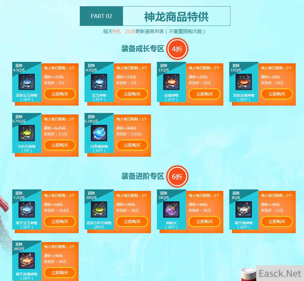 二、神龙商品特供 每天9点、21点更新道具列表(不重置限购次数)