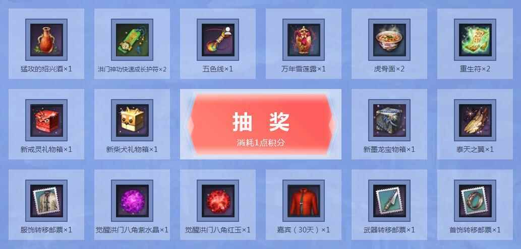 《剑灵》神龙商店感恩节开启限时折扣,活动期间,每个QQ号都可在活动页面抽取一次幸运礼包,还有特价商品限时优惠折扣购买,更有消费得积分活动,赢取八角宝石、转移邮票等奖励。