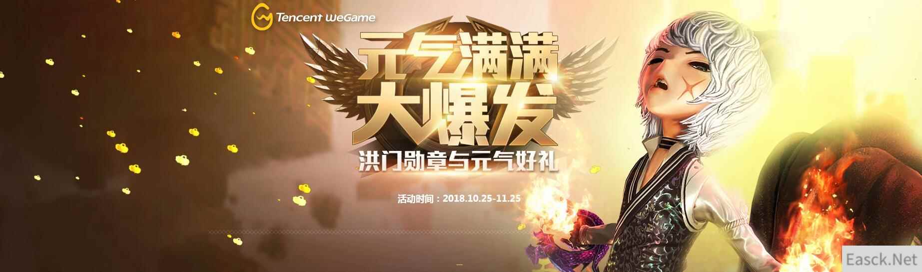 三、注意事项 1.活动时间为2018年10月25日至11月25日,礼包领取时间截止至11月26日。 2.页面元气值将于次日12点后更新,每天只能领取前一天的元气值。 3.元气礼包每个QQ限制领取1次,在页面购买洪门勋章后可领取额外礼包 |