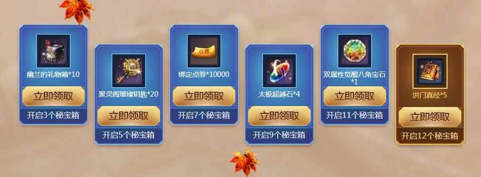 三、开箱即送奖 只要开启秘宝箱数量达到指定要求,就可以领取丰厚奖励!