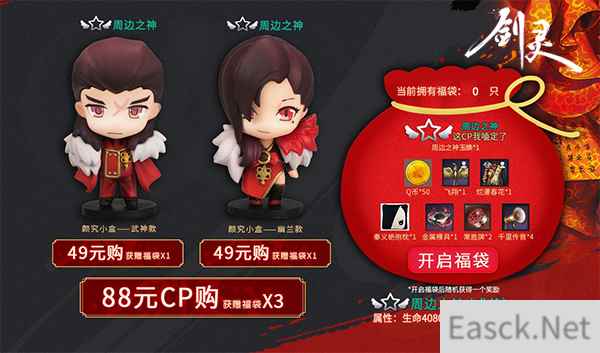 “颜究小盒”武神&幽兰 即日起至1月29日活动期间,购买春节“颜究小盒”的玩家,每购买一件必得1只福袋,单笔订单购买两件小盒额外获得一只福袋,打开福袋有机会抽中2019稀有新成就“周边之神”,更有秦义绝抱枕、时装“烂漫春花”、Q币等奖励亟待获取。此外,购买春节“颜究小盒”组合的用户,还能够获得“火炮兰Q版手办10元限时优惠券”。