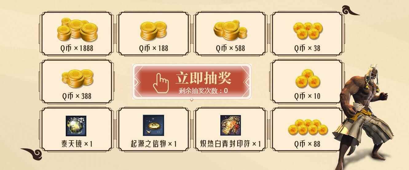 二、充值抽大奖 活动期间,所有玩家在活动页面充值指定点券数量,可获得抽奖次数并参与抽奖!充值获得的抽奖次数每人最多获得5次,Q币数量有限,先抽先得!