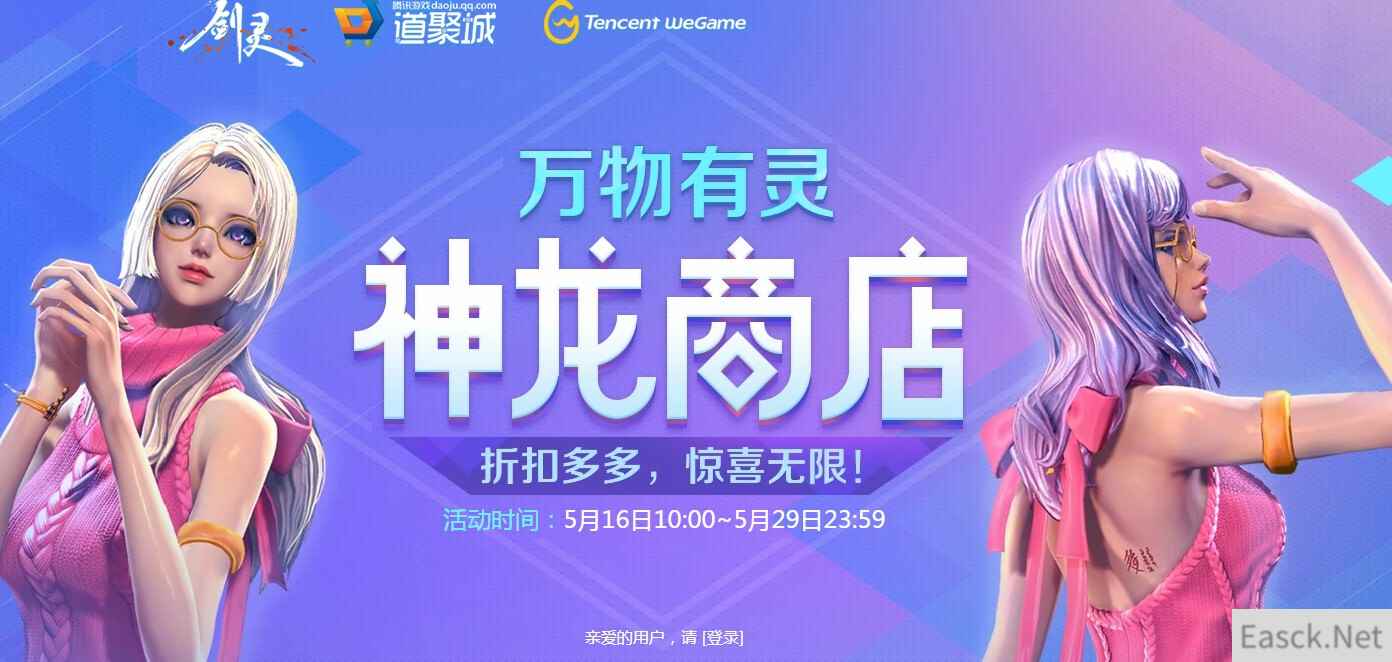 《剑灵》5月万物有灵神龙商店 活动时间:5月16日~5月29日 活动地址:点击进入 活动地址: