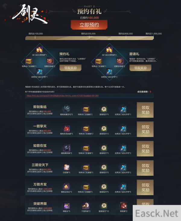 新职业弓手 助威新职业 弓手预约活动火爆 日前,《剑灵》已率先推出了新职业的预约福利活动,为广大期待弓手的玩家们准备好预约好礼。截止至7月10日前,玩家在活动期间完成预约即可领取预约礼,邀请好友完成预约还可额外获得邀请奖励。当全服预约人数达到指定数额时,还可以解锁全服预约奖励,壕礼领不停,备战弓手心不慌!
