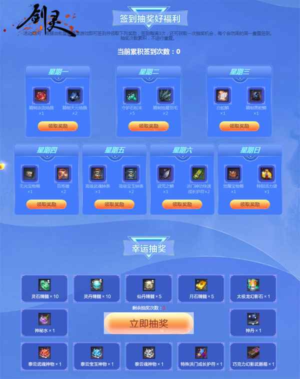 图1:签到抽奖好福利 活动期间,玩家还可以开启幸运专属礼,开启后可随机获得3种超值礼包,每种礼包在活动期间内仅限购买1次。