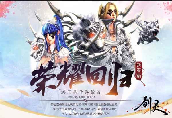 图5:荣耀回归 洪门弟子再聚首 专享回归三重礼 值此新春佳节团圆之际,《剑灵》也发出了召集令,荣耀回归专享三重好礼!2019年12月7日之前登录过游戏,但在2019年12月8日-2020年1月7日登录次数≤3次,不包含2019年12月8日起新注册的用户,这部分玩家即为此次活动指定的回归玩家,在重返洪门后可以享受三大专属回归礼。其中第一弹好礼是回归欢迎礼,回归玩家可以在活动页面上选择一款适合自己的回归欢迎礼,完成指定任务即可获得相应的丰厚奖励。根据选择的欢迎礼不同,回归玩家也将会遇到不同的任务和奖励哦! 第二弹好礼是回归成长礼,回归玩家依次完成活动指定修炼任务,即可领取相应奖励。需要注意的是,必须先领取当前任务奖励才可开启下一档任务。最后是回归特权礼,符合回归条件的玩家,每日通过WeGame或QQ网吧登录《剑灵》,可领取到相应的特权奖励。 荣耀回归新春篇活动链接:https://bns.qq.com/cp/a20191220ryhg/index.html 红红火火迎新年,《剑灵》2020跨年活动缤纷启程,海量好礼亟待领取!在之后,游戏还将陆续上线更多的新春福利活动,一起拭目以待吧。 |