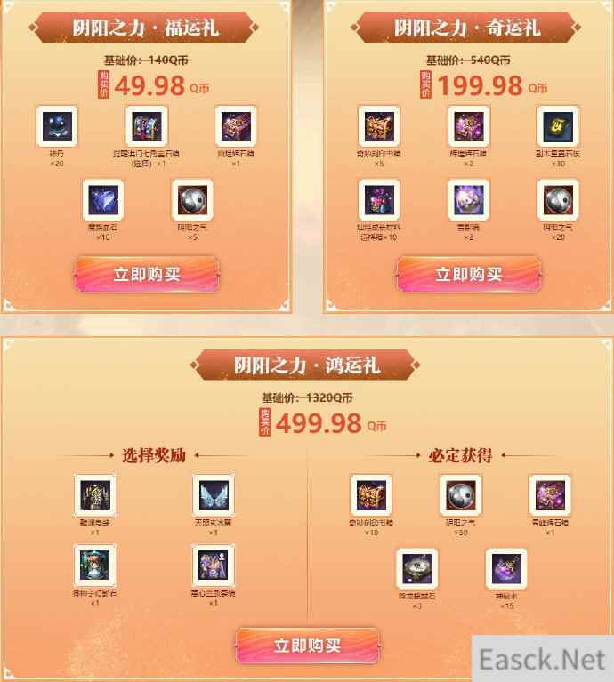 活动规则: 1.活动期间,在本页面可以购买3个档位的礼包。 2.每个档位的礼包每个角色仅可购买1次,购买时发货到当前页面绑定的角色。 3.购买礼包后可以获得阴阳之气,不同礼包阴阳之气不同。 4.阴阳之气可在【集阴阳之气 共赢觉醒之礼】中进行全区积攒。全区积攒到特定水平后,可以根据当前角色的阴阳之气总和,解锁对应可领取的礼包。 -集阴阳之气,共赢觉醒之礼- 活动规则: 1.活动期间,可以在【掘进之礼】购买礼包积攒阴阳之气。 2.根据全区积攒的阴阳之气总和,可以解锁礼包。 3.阴阳之气以绑定角色为基准进行累计。解锁礼包时,需要阴阳之气满足要求才可领取。 4.领取礼包时不会消耗阴阳之气,每个礼包单角色限领一次。 |