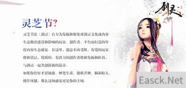 图1:《剑灵》第一届“灵芝节”内容生态盛典 第一届灵芝节开幕 早鸟会场等你来秀 第一届“灵芝节”内容生态盛典率先开启的是早鸟会场,关注《剑灵》官方微博(微博号:剑灵BNS),带话题词#剑灵# #灵芝节#发布原创作品即可视为参赛成功。创作主题需要与《剑灵》有较高的相关度,围绕着剑灵IP系列来展开,包括但不限于《剑灵》与《三生三世枕上书》的跨界联动,《剑灵》角色故事、剑灵玩家故事、剑灵韩服虚幻4版本等。参赛作品形式不限,鼓励用户以短文故事、手绘、CG混剪、真人短剧、游戏实录、搞笑配音、cos、舞蹈等多种表现形式参与。