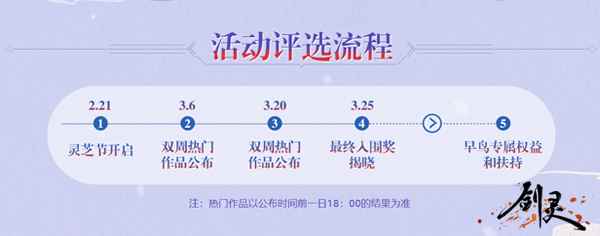 图2:灵芝节 今日,伴随着早鸟会场的惊艳上线,一时间聚焦了各方关注的目光,围绕着早鸟会场活动页面更是引发众多热议,首先便是与唯美炽爱仙恋剧《三生三世枕上书》的深入联动。在这个风格唯美浪漫的活动页面上,除了有剑灵玩家特别熟悉的“姐妹花”——火炮兰与烟花玲之外,背景上的漫天佛铃花更是极尽迤逦美幻。佛铃花贯穿《三生三世枕上书》的整个剧情,也见证了帝君和凤九的爱情。《剑灵》携手《三生三世枕上书》为早鸟会场送出参与奖励“沐风蝶幻影石”以及热门作品奖励的“三世灵缘”套装。 除此之外,活动页面上预告的神秘主会场也是收到了很多玩家的关注。众所周知,“灵芝节”是《剑灵》年度内容生态盛宴,游戏旨在通过“灵芝节”发掘和聚集对剑灵文化或内容生态做出建设和影响的玩家、创作者、平台,并为他们提供官方扶持和特权加身,正如金棕榈奖是法国戛纳国际电影节的最高奖项那样,《剑灵》“灵芝节”内容生态盛宴最终大奖“金灵芝奖”,也不亚于是对玩家的最高荣誉和实力的认可!继早鸟会场之后,第一届“灵芝节”内容生态盛典也将迎来压轴“大戏”,即最后的主会场。游戏为主会场加上了“神秘”的前缀,是否暗示着在主会场,除了见证“金灵芝奖”花落谁家之外,还将有诸多惊喜在等待着大家? 而作品要求中提及的“剑灵韩服虚幻4版本”,也再一次将“剑灵虚幻4版本”带入大家的视线,当然也吸引了一票玩家的热议。“剑灵虚幻4版本”是否即将到来?这算不算官方在提前为“剑灵虚幻4版本”进行预热宣传?最终也只能等待时间给出答案了。 双周公布热门作品 3月25日揭晓最终入围奖 根据参赛者的作品热度评选,包括作品的阅读、转发、点赞、评论数等,是热门作品奖的评审规则,早鸟会场将会3月6日、3月20日分别进行双周热门作品公布,而最终的入围奖则是会由专业评审从所有入选的热门作品中再进行评选,预计将于3月25日揭晓获奖名单。除此之外,根据参赛着的作品人气、内容质量、创意,专业评审还将评选出潜力作品奖,该奖项名额无上限,所有参赛的优秀作品都有机会获奖。精彩不仅如此,据悉在早鸟会场之后,还会有一个神秘主会场在等待着这些灵芝节-入围创作者们。
