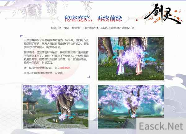 图5:秘密庭院,再续前缘 完成联动任务 再续三世灵缘 伴随着《剑灵》新版本的上线,游戏世界中也悄然出现了一个秘密庭院。据绿明村一位知情的村民所言,秘密庭院和他印象中的样子有些许不同了。庭院中好像来了两位客人,一位身着紫衫清贵高华,皓皓银发似白青山冻雪;另一位容颜绝丽,额间一朵凤羽,甚是活泼。哦,那位村民说他自己叫,叫司命星君……《剑灵》联动任务“见证三世灵缘”已经开放,玩家可前往绿明村,与NPC司命星君对话领取任务。在完成任务的过程中,重历凤九帝君之间的爱恨纠葛,他们能否在《剑灵》游戏内再续三世灵缘,一起拭目以待吧! 此外,剑灵&三生三世枕上书联动同人曲 《兰书》也已正式上线,古风四溢的唱腔里,一曲衷肠诉尽了痴恋。 《剑灵》携手热播剧《三生三世枕上书》展开跨界联动,玩游戏参与活动就有机会穿上与《三生三世枕上书》主角同款的游戏套装!除此之外,游戏还推出了联动剧情任务和联动同人曲,在之后还将开启第一届“灵芝节”内容生态盛典,更多精彩绝对值得期待。 |