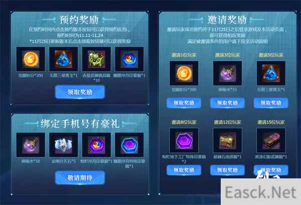 觉醒预约活动第一阶段开启 好礼约出来 目前,“投影”专属预约活动正在火爆进行中,只要在预约时间内点击活动页面的预约版本按钮,就可以获得预约礼包。独乐乐不如众乐乐,邀请玩家成功预约并于11月25日之后登录游戏及本活动页面,还可以获得相应奖励。成功邀请的人数越多,奖励越丰厚。精彩不仅如此,在11月25日版本更新,“投影”正式上线之后,第二阶段的活动也将如期同步开启,更多好礼等你来领取。玩家无论是通过第一阶段还是第二阶段的活动获得的积分奖励,均可以直接用于兑换游戏道具。