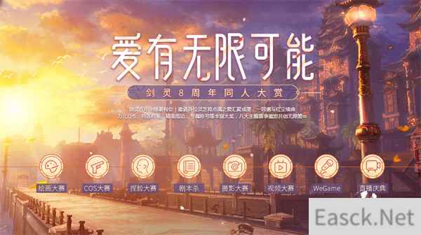 爱有无限可能,剑灵8周年同人大赏开启 剑灵八年,感谢有你!作为《剑灵》八周年庆典序曲,同人大赏活动已经惊艳开启,邀请灵芝齐聚,将点滴之爱汇聚成墨,成余音绕梁的天籁,成帧帧动人的画卷……共创出无限可能的爱。