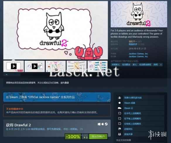 《Drawful 2》,这款由Jackbox Games,Inc匠心独运的海外热门“你画我猜”式游戏,自2016年6月首次亮相以来,便在Steam平台上赢得了广泛赞誉,收获了特别好评的总体评价。 近期,官方宣布在Steam平台上启动限时免费体验活动,诚邀所有对此类游戏感兴趣的玩家前来体验。玩家只需访问《Drawful 2》的Steam页面,轻松点击“添加到账户”,即可在活动期间内免费享受游戏乐趣,此福利将持续至8月29日上午1点截止。 然而,值得注意的是,《Drawful 2》当前尚未提供中文支持,可能对部分玩家构成语言障碍。此外,作为一款侧重于休闲与社交互动的游戏,它要求玩家在线联机,并最好能邀请朋友共同参与,这样的设定或许让部分玩家望而却步,从而导致近期评价中出现了正反不一的声音。尽管如此,《Drawful 2》以其独特的游戏机制和乐趣无穷的玩法,仍不失为聚会娱乐或在线互动的理想选择。 |