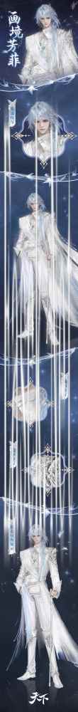 蓝发飘舞,挽作垂髻 在月色的照耀下盈盈浮光,如飘逸银绸 银白对襟礼服之上,以碎钻腰带虚拢长袍 妥帖之余,更添几分灵动 丝质绶带宛如月华纺就,萦绕柔和光芒 素银雕镂羽纹肩铠,寒光凛凛 身后披风缀以银链,似星河倾泻而下 只见他手拄银杖而来,步履稳重大方 若拆下肩上的薄纱披风,挺拔身姿展露无疑 银蝶翩徙于他的身侧 似被他的优雅气质吸引而来~ 坐骑·仙宵骏梦