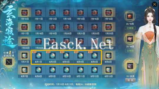 那么这一次,我们为大家准备了哪些福利好礼?事不宜迟,一起来看看! 一连五天,签到奖励双倍发放! 如果说有什么任务做起来轻松又有好礼相赠,那肯定就是签到了。 如果少侠一次不落的完成了这段时间的签到,那么肯定已经把拓本武器【很直的枪】和【木鱼叉】、饰件【小小纸鸢】、专属事迹、羽灵珠、【封】炼化之灵等好礼带回家了吧~ 而小天天要提前告诉大家的是,8月1日-8月5日的签到,“含金量”将再度提升!因为这一连五天,每日签到都将获得双倍奖励!