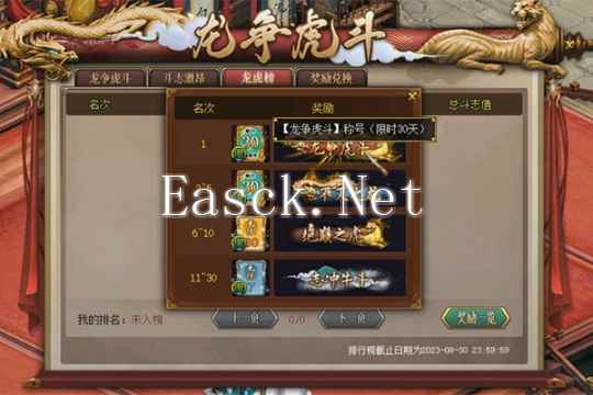 龙争虎斗,挑战极限,迎战最强对手!在龙争虎斗活动期间,积极参与龙虎擂比武等精彩活动,提升斗志值,海量奖励等您来赢取! 点击游戏界面右上角的“龙争虎斗”图标,即可参加PK活动。系统将每日为玩家匹配一名颇具实力的“劲敌”,若您能在当日累积的斗志值点数超越对手,即视为战胜“劲敌”,次日将额外获得1000点斗志值作为奖励。若双方斗志值持平,则先达到该数值的一方将赢得胜利。而若您的斗志值为零,则无法取胜。 在斗志激昂的分页中,可以查看每日获取斗志值的各种途径(随自然日动态更新),不同类型的PK活动每日所能获得的斗志值均设有上限。 活动结束后,榜单前三十名的玩家将有机会获得高价值物品和极品称谓奖励。