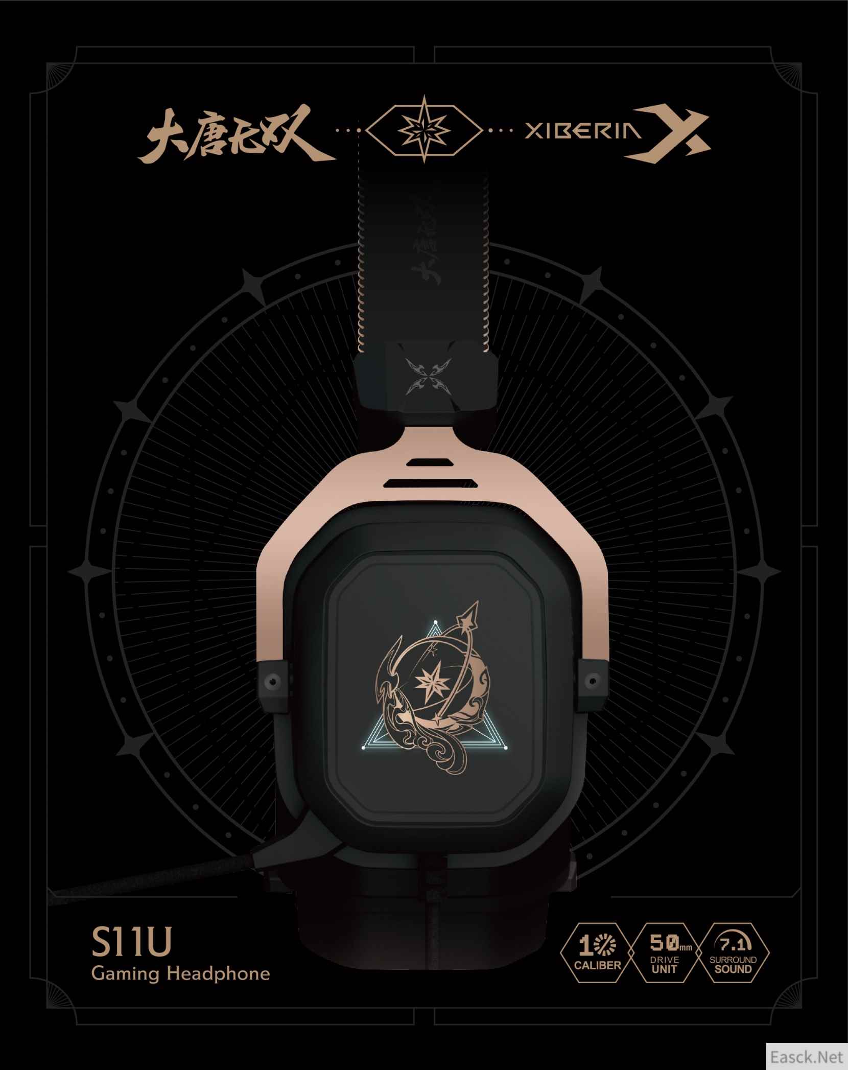 【北辰送祝福,赏月赢好礼】 但愿人长久,千里共婵娟。此次大唐无双新职业北辰宫携手专业电竞耳机品牌“西伯利亚”为给位带来中秋祝福。 西伯利亚S11U北辰联名款采用太空舱科幻造型设计,耳壳造型灵感源自太空舱窗口多边形态,简约且机械感十足。金色质感非常强,头戴式设计、宽大的耳罩、在大钢叉悬浮支臂的连接下,耳机整体显得非常硬朗,充满浓浓的电竞风!