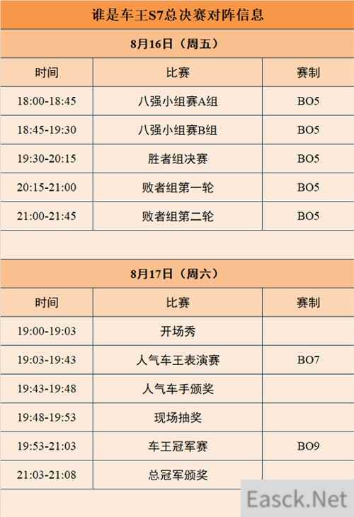 腾讯游戏QQ飞车《谁是车王S7》总决赛,将于北京时间8月16日晚18:00、17日晚19:00举行,通过十六轮常规赛、十六场淘汰赛考验的八强车手,将在苏州阳澄国际电竞馆,向冠军发起最后的冲击。