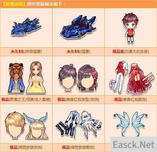 活动期间,购【角色经验卡+900】,附赠甜蜜汤圆,有机会得永久S车【终极猛兽】/【猛兽】、极品宠【白勇太纪念版】、极品【野兽之王/丽影佳人套装】/【缘喜红焰发型/发饰】/【缘喜红焰服饰】/【绮丽梦游发饰】/【绮丽梦游服饰】或其他奖励之一!