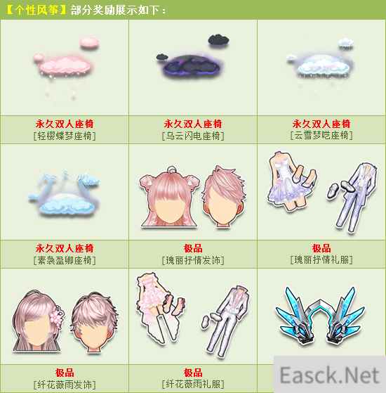 活动期间,购买角色经验卡+600,获赠:个性风筝,开启有5.6%-7.7%几率获得:永久双人座椅【轻樱蝶梦座椅】/【乌云闪电座椅】/【云雪梦呓座椅】/【素袅盈卿座椅】、极品【瑰丽抒情发饰/礼服】、【纤花薇雨发饰/礼服】或其他奖励之一!