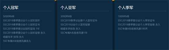 2、报名免费送永久S 只要成功报名SSC线上海选赛就有机会获得以下奖励哦!个人赛与车队赛均报名可获得两次报名奖励。