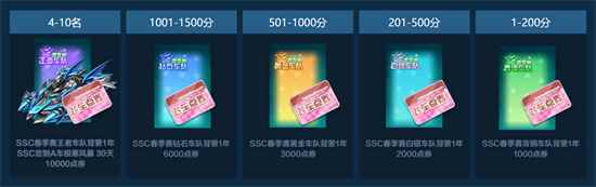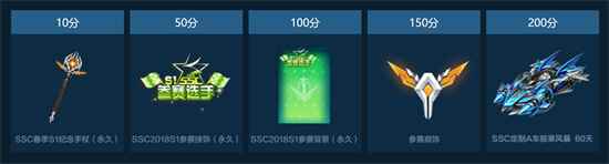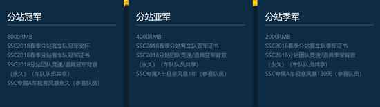 4、个人积分奖励 今年的线上规则,最大的变化莫过于,后三个梯度的奖励变动:只要跑到目标分数,就能拿奖励,不再依靠排名。SSC2018参赛车手背景、SSC208春季纪念肩饰、手杖,还有SSC分站定制A车,只要你参赛、敢坚持,统统都能拿到手!