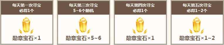 每天完成任务,可获得寻宝券,每消耗寻宝券×2,即可参与一次寻宝,概率获得以下奖励!