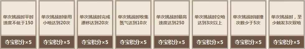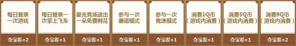 每天完成小橘子、白勇太、马特的挑战,可以获得夺宝积分,夺宝积分达到指定数字,即可100%获得宝箱中的奖励!