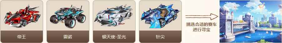 每天要寻宝的赛道都各不相同,从4辆赛车中选择你认为合适的赛车去寻宝,将有机会为你带回更多的奖励!甚至有机会拿到额外的429宝石。
