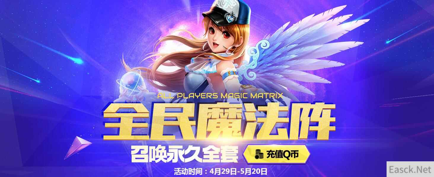 全民魔法阵 活动时间:4月29日-5月20日 活动地址:http://speed.qq.com/cp/a20180412magic/index.htm 一、全民召唤卡 1、购买小橘子挂饰(2天)/2Q币赠送2张全民召唤卡 2、购买小橘子挂饰(20天)/20Q币赠送21张全民召唤卡(95折) 3、购买小橘子挂饰(50天)/50Q币赠送55张全民召唤卡(9折) 活动期间,玩家每进行一次召唤,必得以下奖励之一;已获得的奖励不会重复获得!