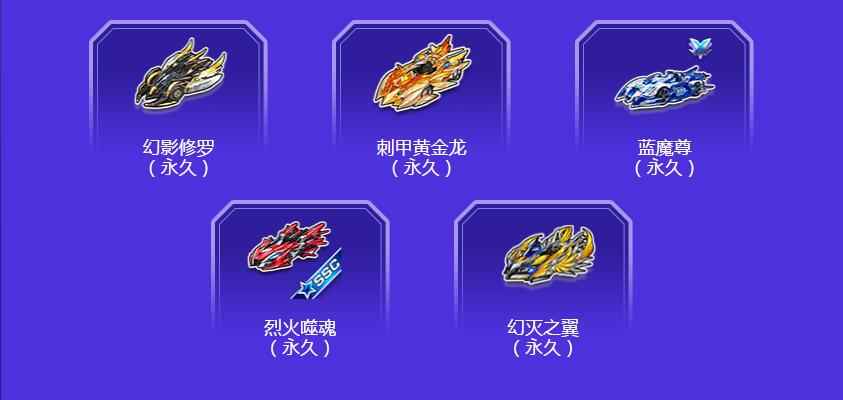 二、兑换专区 1、使用一张“万能赛车卡”兑换以下任意赛车