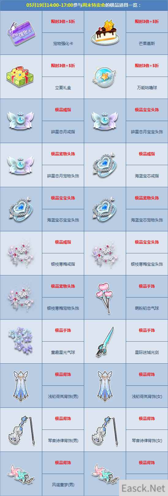 5月19日-5月25日期间,爱的表白日超值特卖会来袭,不仅有【芒果慕斯】等宝箱3倍+5折,还有【风谣童梦】、【天空之城座椅】等唯美极品甜蜜登场,更有【芳菲洛情套装】等情侣贵族套装琳琅上架,爱的表白日,等你来参与!