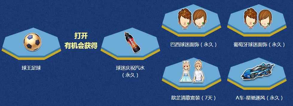 6月29日-7月1日,每天在【世界杯狂想曲】地图中参与一次【炫动轮滑】,就可以获得200点券和1个【球王足球】,每天可完成3次。