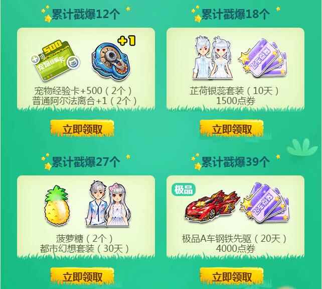 除此之外,活动期间累计戳气球此处达到12个、18个、27个、39个即可领取对应的礼包。
