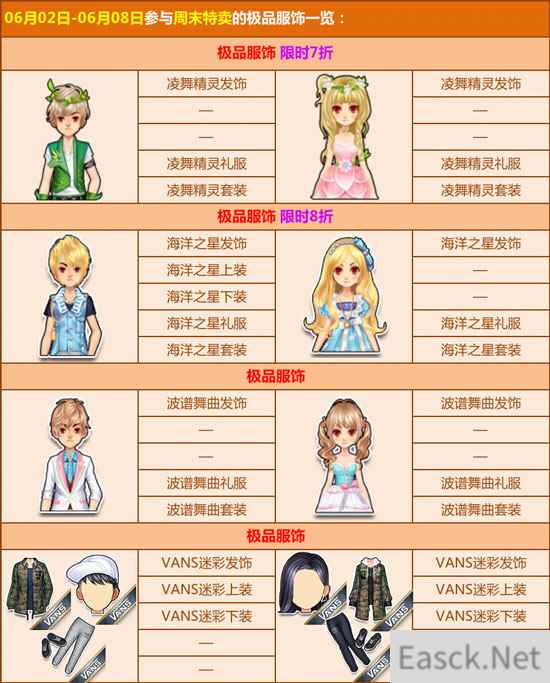 6月2日-3日期间,还有极品双人座椅【花海连城花环】、极品【摩羯幻影套装】/【海洋之星套装】/【凌舞精灵套装】等限时出售,最低5折,手快有,手慢无哦!
