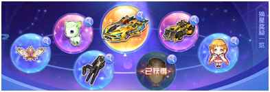每当进度条积累满之后,系统会自动触发摘星事件,并打开摘星界面。这个时候,玩家点击“摘星”按钮,即可从以下几个摘星奖励中随机获得一个,已经获得过的摘星奖励不会重复获得。