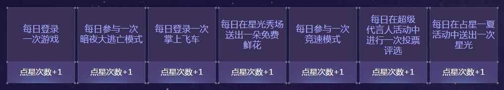 通过一下任务,可以获得【点星次数】!注【点星次数】不会每日清空,请在8月12日之前使用完。