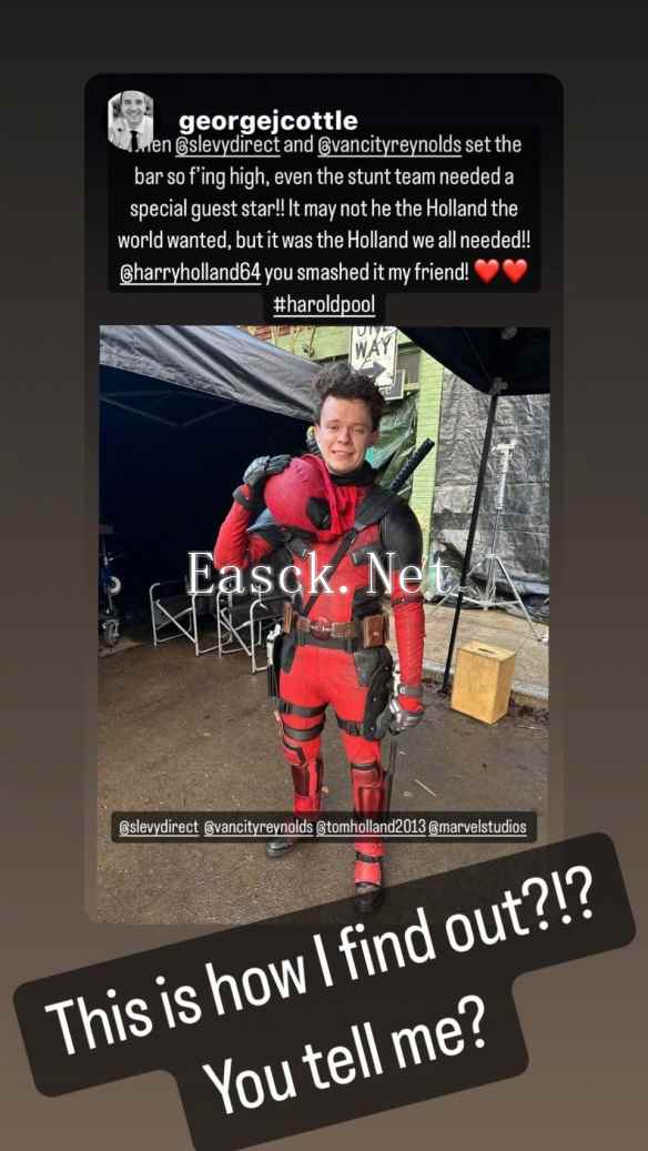 “蜘蛛侠”汤姆·霍兰德的弟弟哈里·霍兰德,客串出演了《死侍与金刚狼》,饰演一个死侍,连瑞恩·雷诺兹本人都不知道。 《死侍与金刚狼》的特技动作演员George Cottle在ig发文,分享了哈里出演片中众多死侍之一的幕后照,表示:“当肖恩·利维和瑞恩·雷诺兹拿出了高标准,连特技动作团队都需要特别嘉宾助阵了!也许他不是全世界想要的那个霍兰德,但他是我们需要的那个霍兰德!哈里·霍兰德,你超棒!” 雷诺兹转发了这条story,表示:“这事我是通过这种方式知道的?!?” |