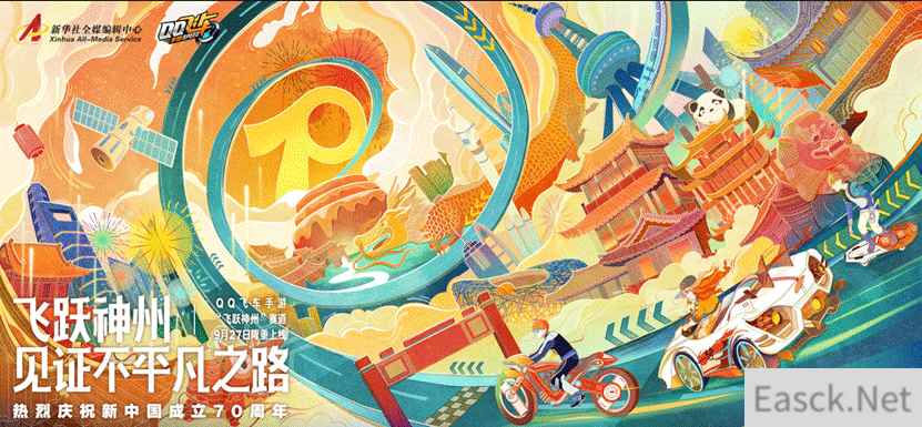 2019年,《QQ飞车》首次与新华社合作,上线了“飞跃神州”赛道,献礼祖国成立70周年。
